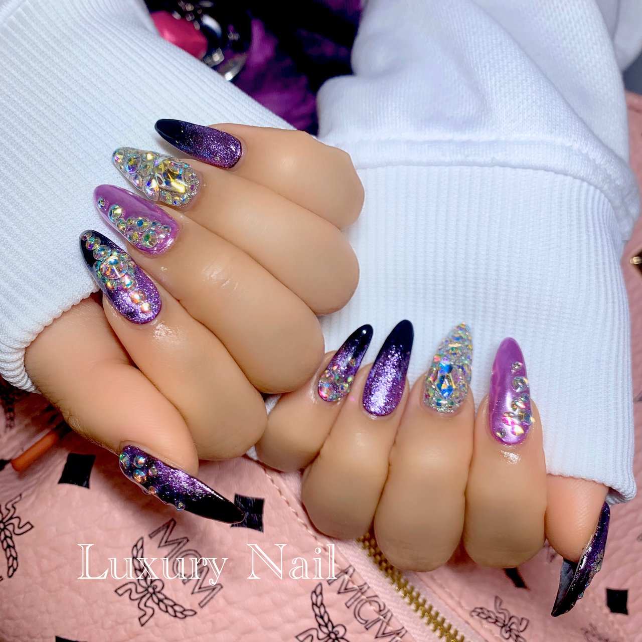 埋め尽くしネイル ストーンネイル 紫ネイル 渋谷ネイル 0 税別 ネイル 東京渋谷駅近ネイルサロン 渋谷定額制ネイル安い ネイルズゴーゴー
